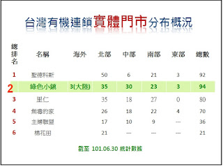 圖:台灣有機連鎖實體門市分布概況